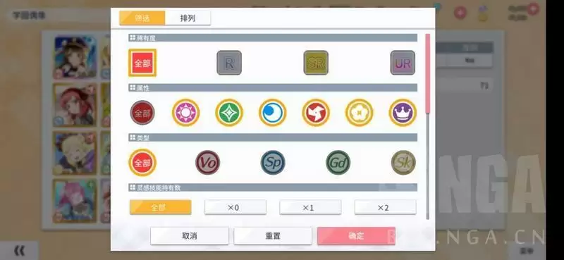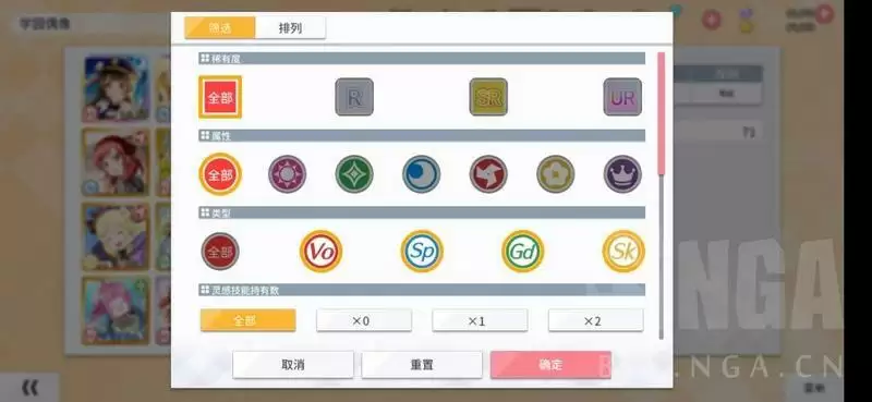 [类型]:类型有四种,分别为Vo/Sp/Gd/Sk,不同类型的角色有着不一样的加成效果。