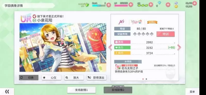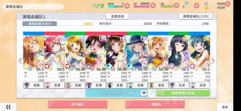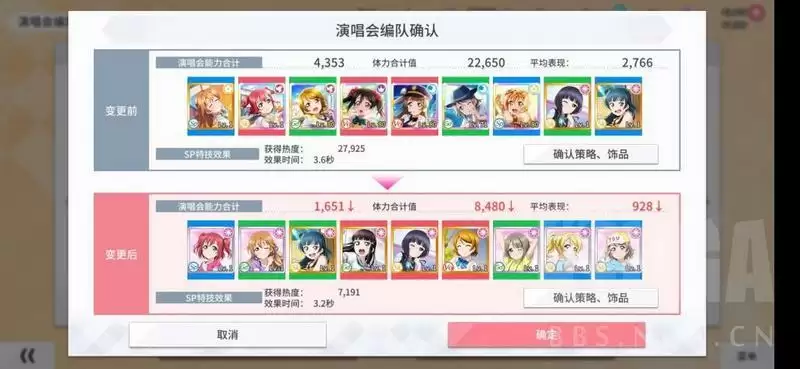 此外在大家后期挑战高难度演唱会时,就需要编辑对应属性的偶像进行挑战,利用同属性的得分加成来打破记录。但前期没有足够数量的UR卡时,不用刻意追求属性一致,毕竟稀有度才是第一优先级。