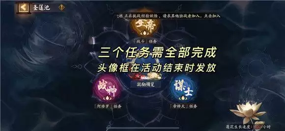 任务:三个任务的完成度决定最终获得的头像框效果(*头像框在活动结束时发放)