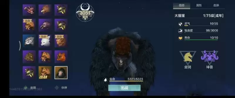 很强的陆地生物,外形是大猩猩模样,拥有很强的攻击能力,获取方法与应龙一致。