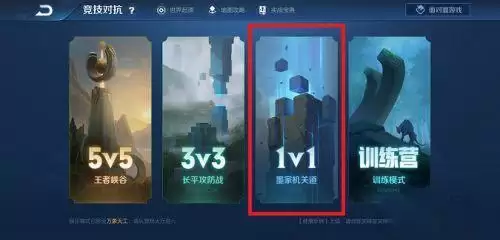 因为5 V5和3v3的时间都特别的长,就算到点投降,也需要六分钟,而且失败加的熟练度很少,所以我们选择1v1。