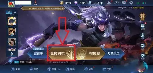 我们点击打开进入王者荣耀,然后我们可以看到下方有竞技对抗选项,我们点击竞技对抗。