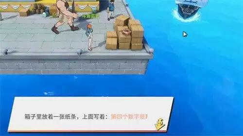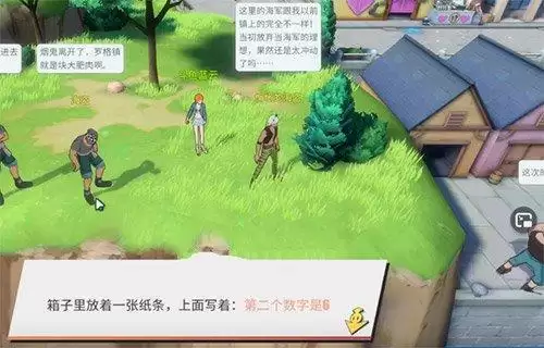 左下角线索位置:可以在地图左下角,然后在惆怅的海盗旁边看到宝箱,打开得到密码6
