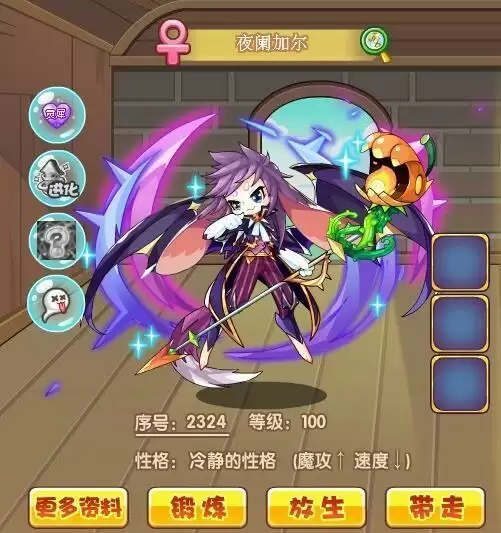 宠物的性格可在宠物界面的战斗能力栏中查看。性格共有25种,其中有5种性格不会对宠物的能力值产生任何影响,其他20种性格会对宠物的两项能力分别产生提升10%或下降10%的影响。性格加成表可在游戏左上方战斗指引界面中查看。