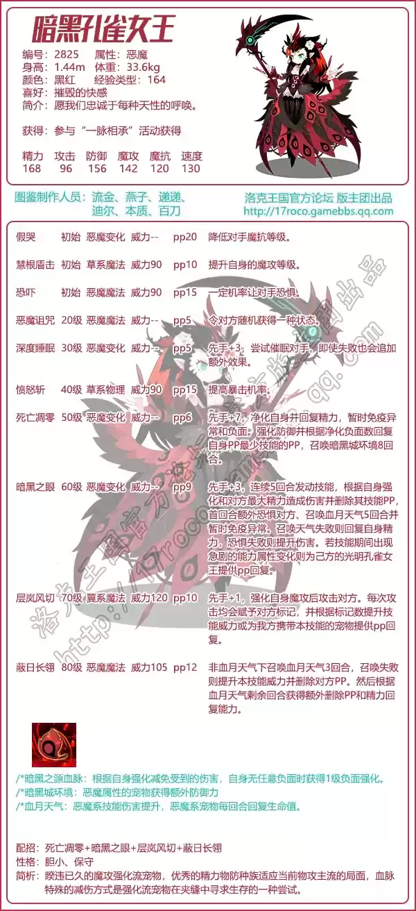 《洛克王国》暗黑孔雀女王技能属性图鉴