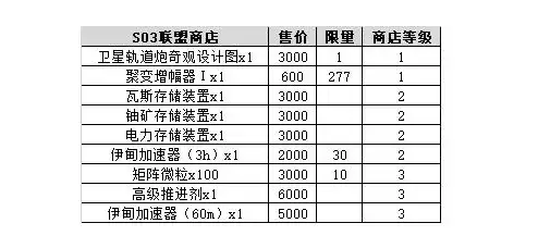商店:使用S03星币购买商品 (主要是奇观)