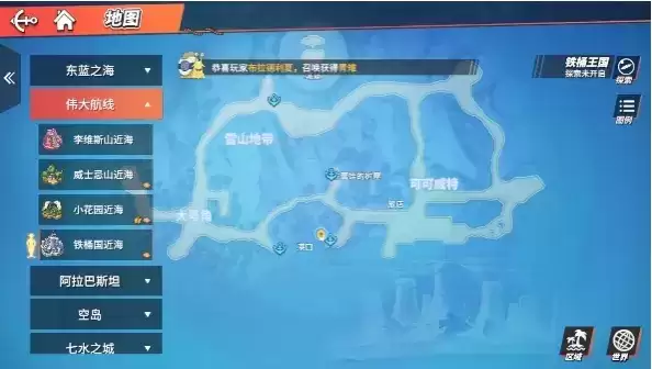 1、必须在游戏中的海中才能钓鱼,在其他区域是不可以的。点击小地图找到“伟大航线”,去到该区域点击进入即可上船。