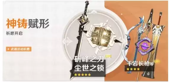 活动期间,限定五星武器「单手剑·斫峰之刃」「法器·尘世之锁」的祈愿获取概率将大幅提升!