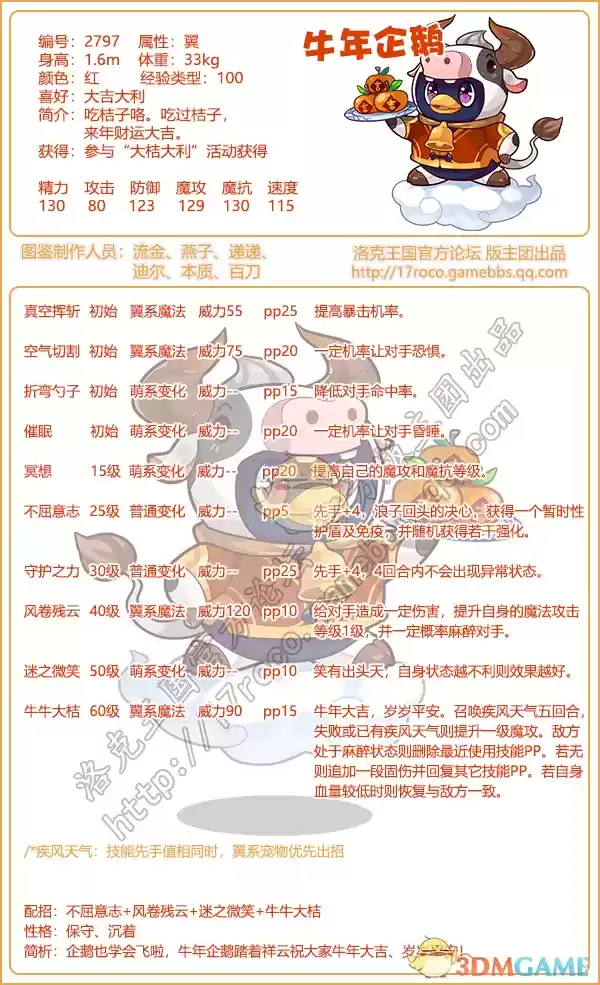 《洛克王国》牛年企鹅技能属性图鉴