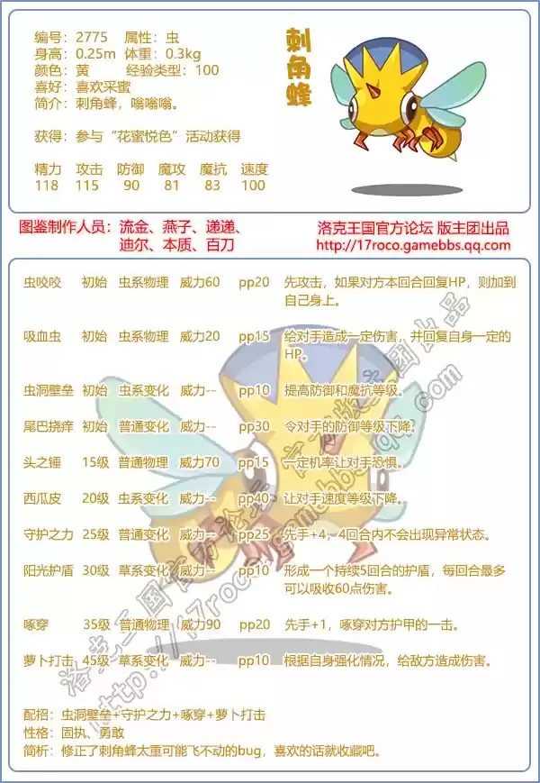 《洛克王国》刺角蜂怎么样呢,厉害吗?这是洛克王国游戏中的宠物之一,很多小伙伴不清楚这个宠物技能属性怎么样,技能该怎么配招,下面小编就给大家带来了《洛克王国》刺角蜂宠物技能图鉴介绍,感兴趣的小伙伴一起看看吧!