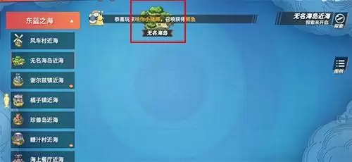 这个位置其实非常容易就可以找到,就是在东蓝之海,然后玩家可以选择橘子镇近海,可以看到一个无名海岛。