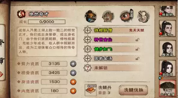 不会加点通通臂力根骨内息....反正早晚都要洗点