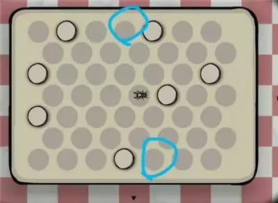 桌子上的小游戏,第一个按在图中圈出来的两个之一,之后随机应变,试几次虫子配合的话应该能过