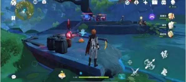 这里从海上过去然后爬到墙上,会看到四个憨憨的丘丘人在看海,从背后偷偷摸过去把异变之石打碎就可以了。