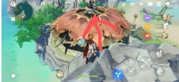 这里有两个异变之石,一个在丘丘人屋子下面,另一个在海边,先打屋子下面的,可以从这个山坡飞到屋顶上,