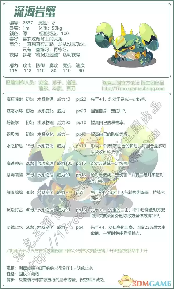 《洛克王国》深海岩蟹技能属性图鉴