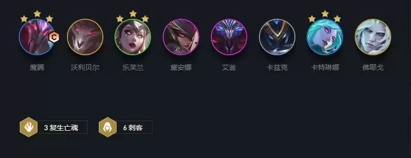 3-2拉6人口D出阵容雏形2斗2黎明4刺客,梦魇可以没2星其他牌至少3个2星可以存钱上7,如果有艾翁可以考虑下掉一个斗士,或者刺客质量不高的情况下,上2斗2刺艾翁+2星单位,3-7打完野拉7,低费刺客基本要D到2星外加艾翁1只,有刺客转职的话6刺+艾翁或者4刺2斗+艾翁刺转给铁男。质量够就存钱到4-7打野后梦魇数量如果多就追3星,少就优先上8找沃利贝尔。