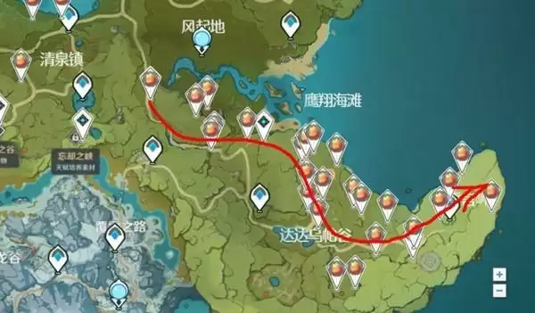 2、接着我们走出蒙德沿着右边的路向着誓言岬一路收集过去就可以了。