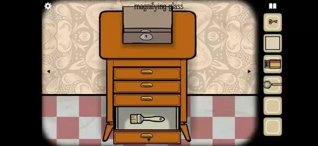 来到床边,在柜子里找到火柴,放大镜,毛刷。