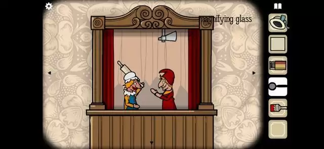 从白帽小人头下找到一根火炬,让白帽拿上,火柴点燃火炬。