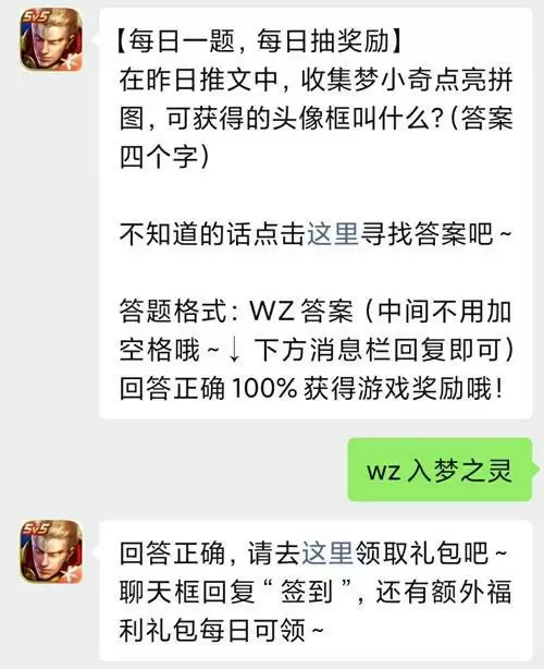 王者荣耀每日一问的问题是关于头像框的,这次可以收集获得梦奇头像框,因此不知道这个答案是什么。也就是这次上线的头像框,想知道的,就一起来看看吧。