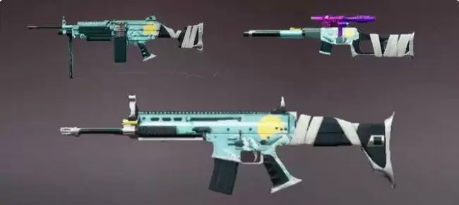 深山诡影三款枪械皮肤,分别是AKM、VSS和M249: