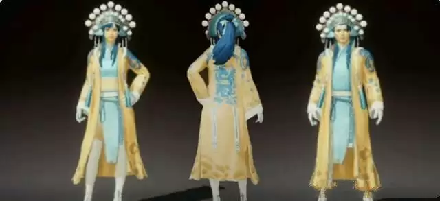 除了深山诡影古风套装,还有另外一套名为梨园独秀的古风军需皮肤,走的是京剧风格,目前上线还早,这是它的男女款套装:
