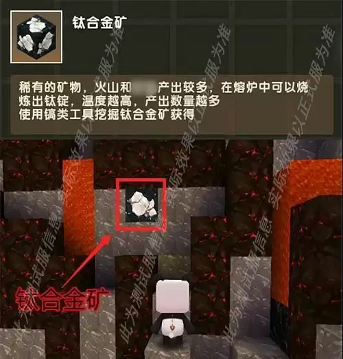 原来,这个是即将在5月19日新版本登场的全新矿物:钛合金矿!这是一种稀有的矿物。在新版本的火山地形里不仅有焱焱蟹、爆爆蛋、熔岩巨人,也有着丰富的矿产资源,而冒险家们在新的地形里也就能挖到钛合金矿啦~