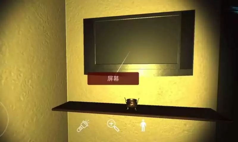 屏幕:进入密室,点击如图位置获取线索。