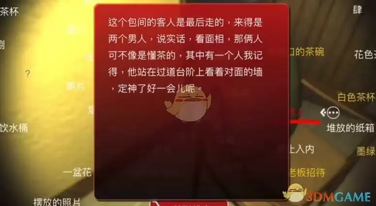 云溪茶舍DLC是孙美琪疑案百家姓系列游戏之一,游戏中五级线索——客人在哪里呢?下面是3DM手游网小编给大家带来的《孙美琪疑案:云溪茶舍》客人线索获取位置介绍,还没有找到线索的小伙伴一起看看吧!