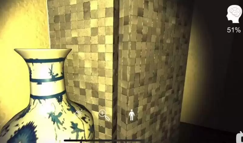 如图,在【溪水间】外花瓶这里,后面的墙可以推动,打开就是一间密室!