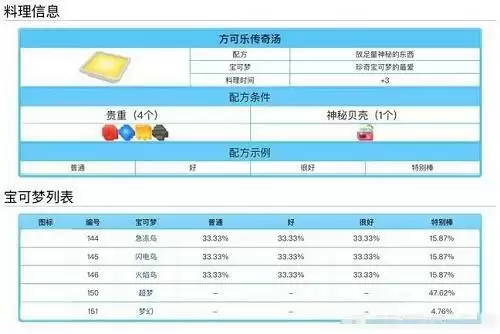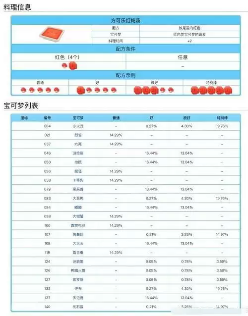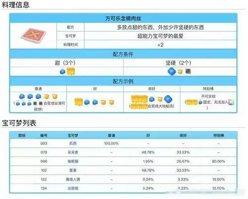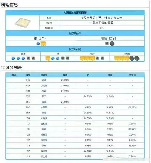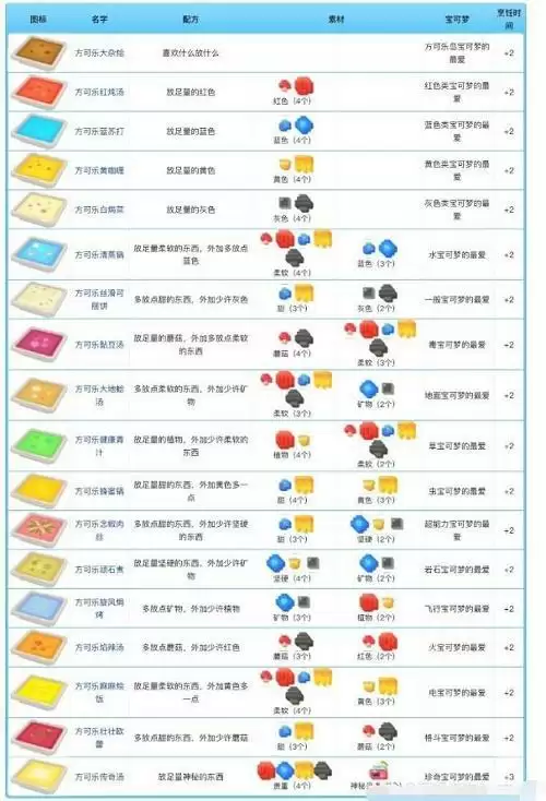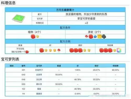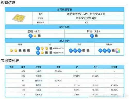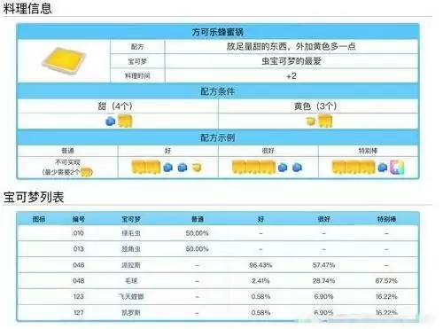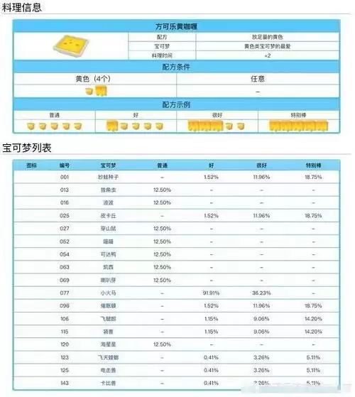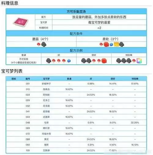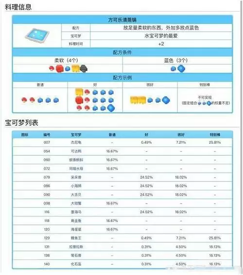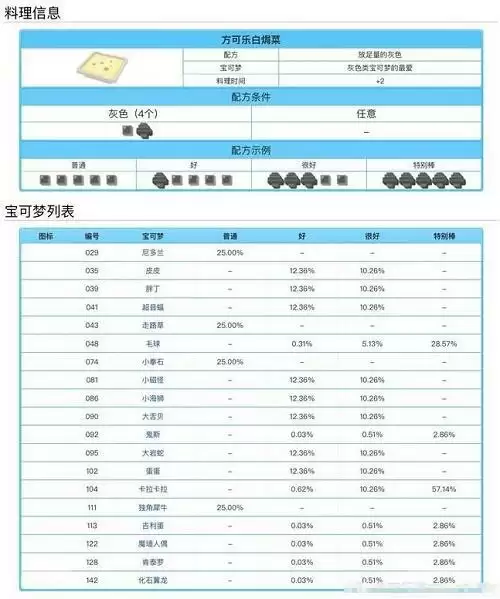 宝可梦大探险料理配方食谱大全