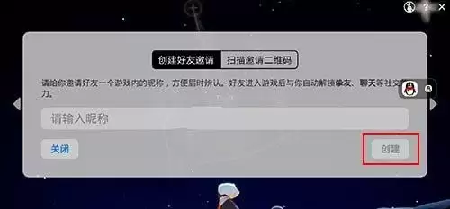 首先大家需要靠近这个小祭坛,点击这个二维码,然后选择【创建好友邀请】,之后输入昵称,选择创建。
