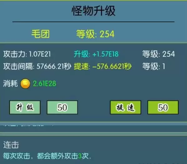 熊猫跟巨兽记得升攻速!别的怪物升攻击。