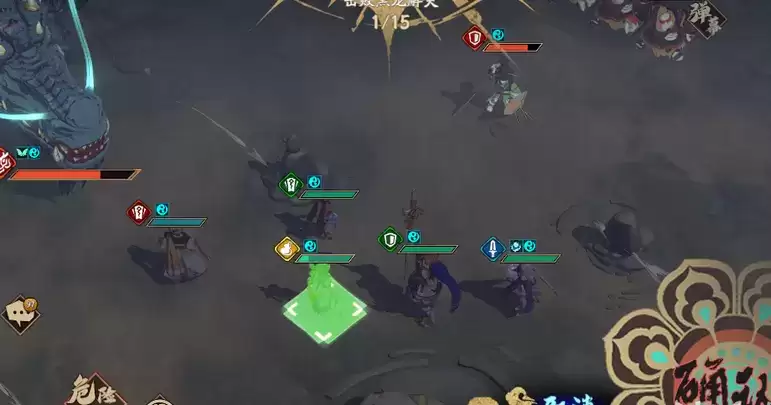 各个人物走到这些位置,璇玑杀一个鬼卒,冰璃注意不要攻击,封铃笙继续加血