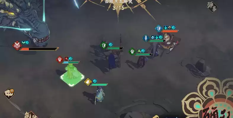 中间三人组,夏侯仪先上来用地火覆盖boss的地形,古伦德攻击,然后封铃笙给古伦德加血