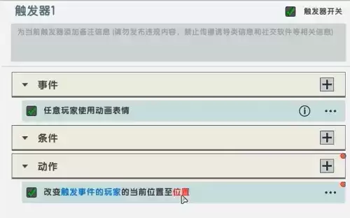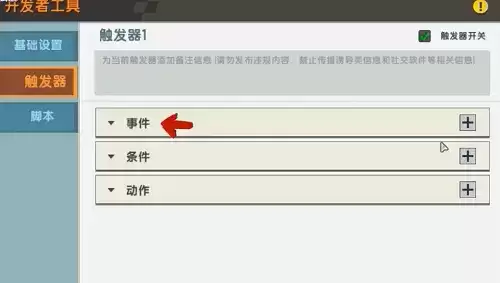 进入到地图之后,大家看到的是绿草地的场景。然后点击开发者工具中的触发器。