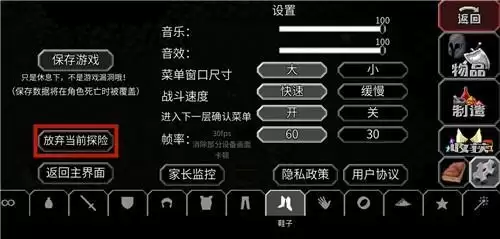 如果你在残血的时候都未能拿到逃脱之翼,为了保命建议在设置中,点击【放弃当前探险】,这样也能满血回城并且存档。不过此前在洞穴中探险获得的奖励,就没有了。