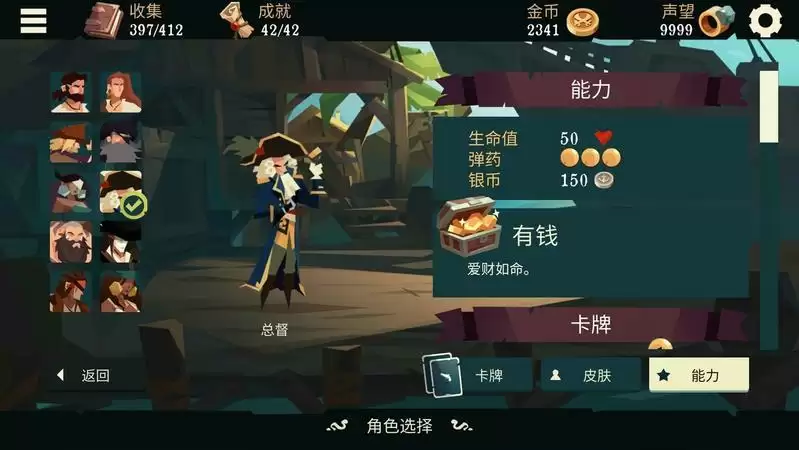 总督血量50,弹药3,初始牌组中规中矩。总督竞技场相性很差,主要依靠被动对盾的叠加,前期要注意不要乱花银币。老实说被动对伤害提升并不大。