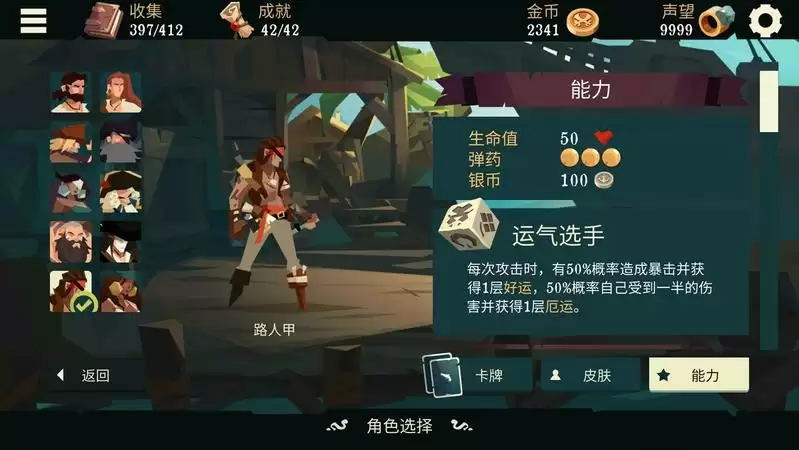 路人甲血量50,弹药3,初始牌组花里胡哨。路人甲老实说感觉是加强版船匠,但比船匠好,竞技场后期基本不依靠初始牌组。