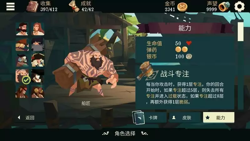 船匠血量50,弹药2,初始牌组辣鸡。船匠被动毫无卵用,甚至希望没有最好,弹药还少的可怜。竞技场最好纯依靠技能打伤害。