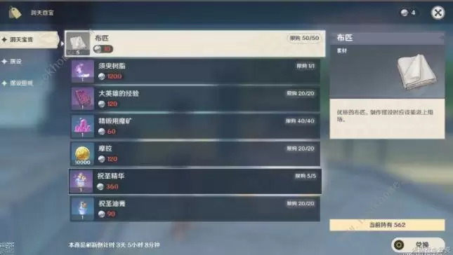 一、布匹和魔矿是收集制作产物,可以不消耗树脂获得。