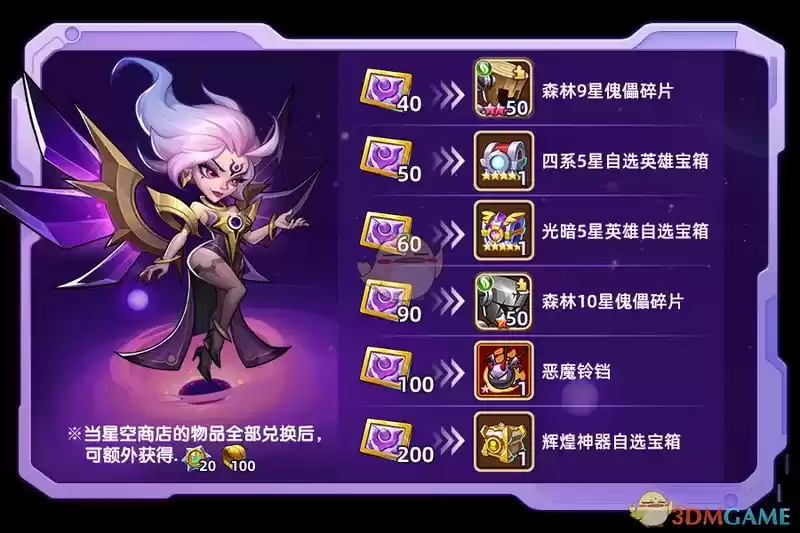 若星空商店的物品全部被兑换,还将额外获得:时空核心x20,辉煌圣物x100!