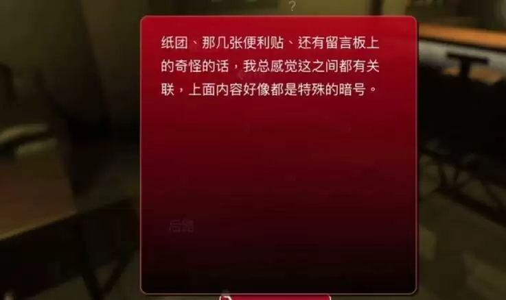 纸团、那几张便利贴、还有留言板上的奇怪的话,我总感觉这之间都有关联,上面内容好像都是特殊的暗号。