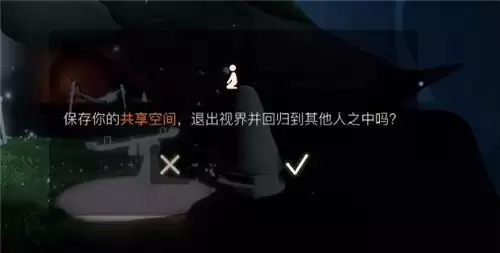 首先共享空间的离开方式,其实和进来的方式一样,都是在石像面前的光圈打坐。如下图所示,我们摆放好物品后,再次在在石像面前坐下,就会出现“保存你的共享空间,退出视界并回归到其他人之中吗?”的提示窗口。