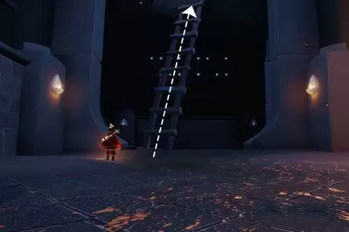 玩家直接在出场的地图,然后往左上角看,可以看到这个梯子上面有个小金人。