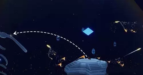 在这个鱼骨头上面的顶端,然后可以看到一个小金人,注意这个地方不要停留太久,不然就强制的会让你飞到顶层下不来了。
