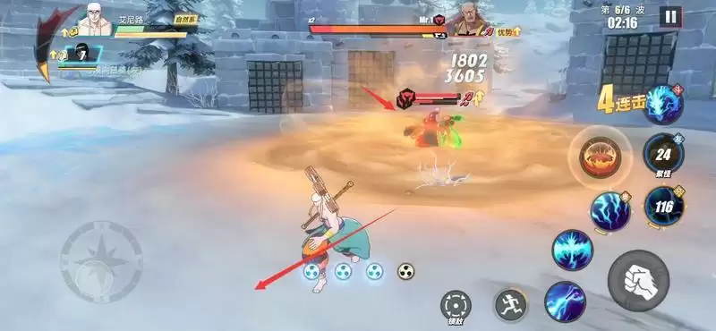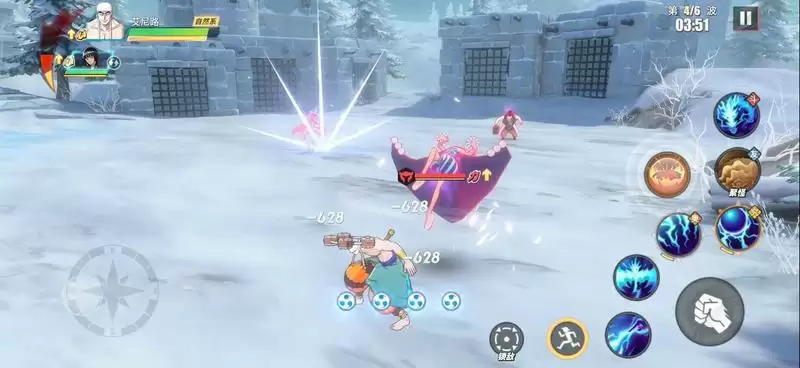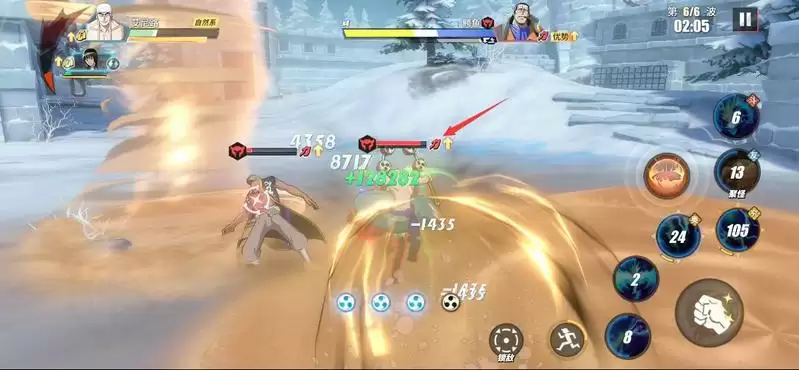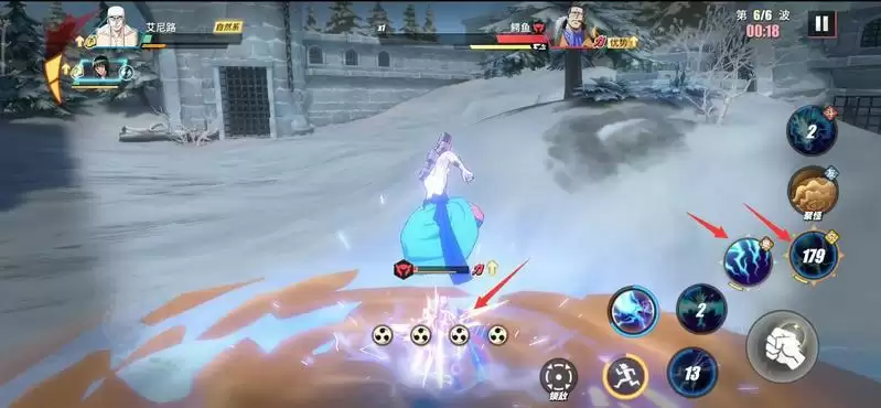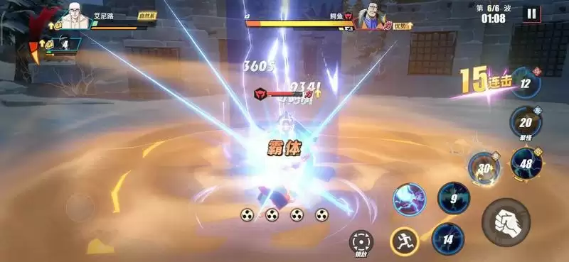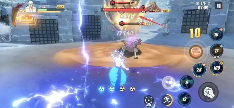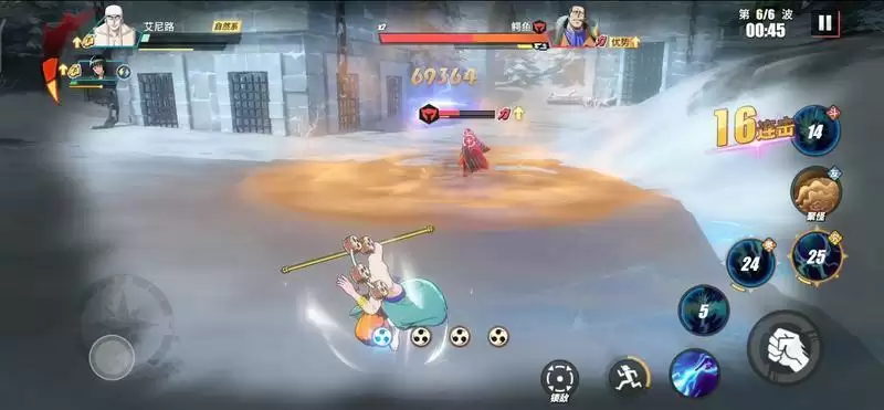 等Mr.1登场后,也就是第4波,此时我们替换出副战(罗宾)登场,利用奈美助战积攒能量值,然后不断移动躲避攻击。