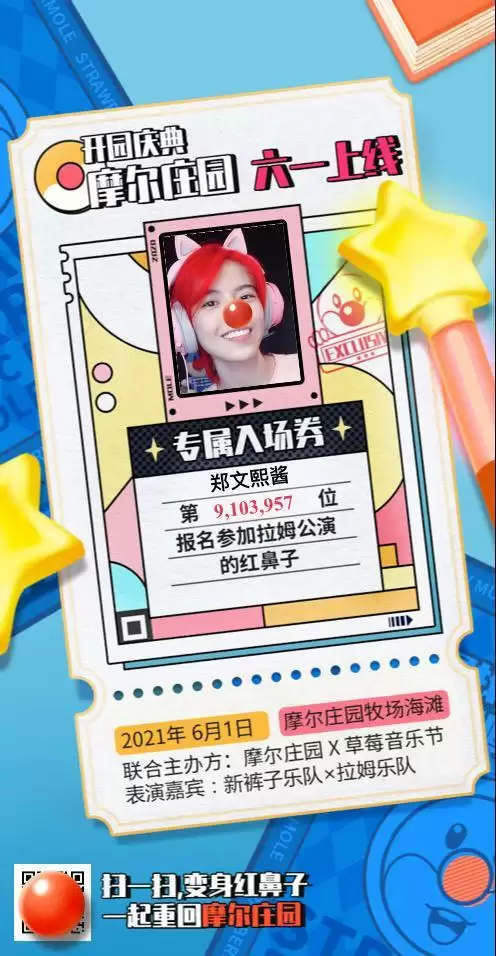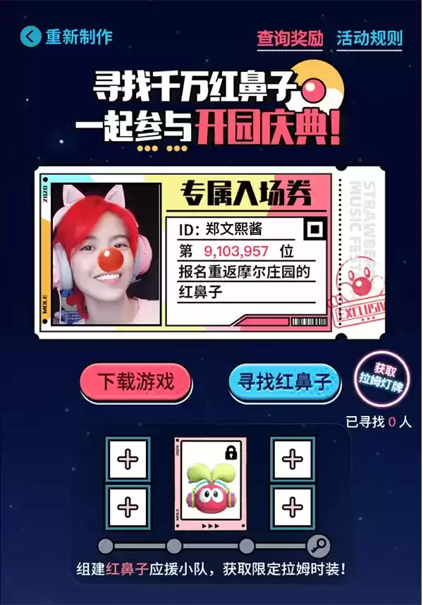 Step4:点击【寻找红鼻子】,获取并保存入场券海报