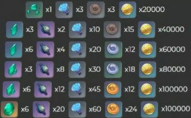 角色升级所需要材料